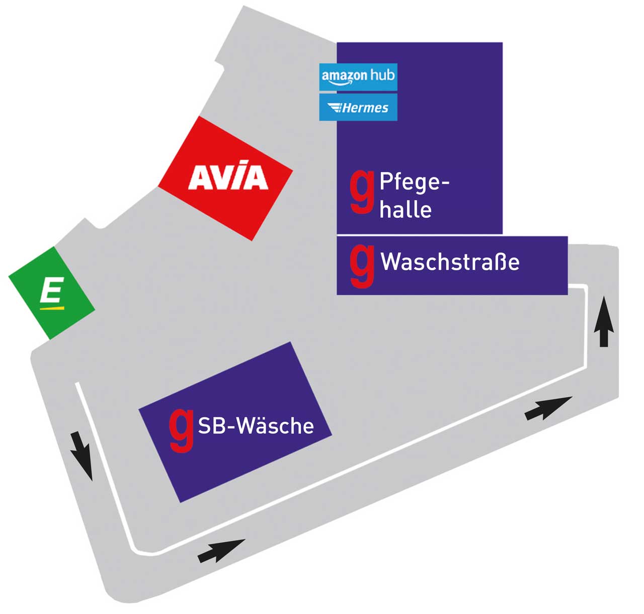 4 überdachte SB-Wasch-Plätze | Durchfahrthöhe 3,20 Meter