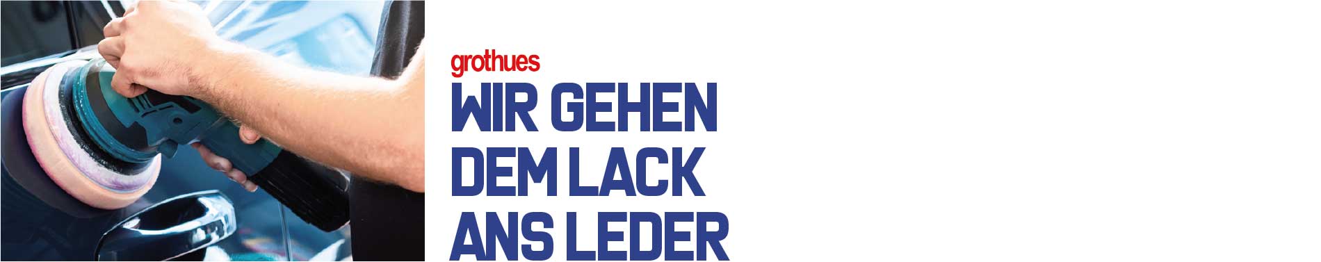 Wir kümmern uns professionell um den Lack, Ihre Sitze (Stoff oder Leder), die Armaturen, die Mittelkonsole, die Seitenteile, Teppiche und alle anderen Oberflächen im Fahrzeuginneren. Aber auch der Außenlack und die Felgen Ihres Fahrzeugs sowie das Cabrio-Verdeck (sofern vorhanden) sind bei GROTHUES in allerbesten fachmännischen Händen.